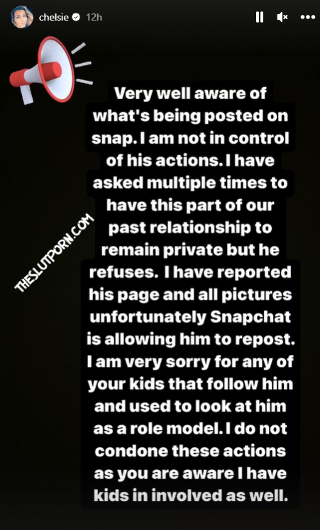 Very well aware of what’s being posted on snap Snapchat. I am not in control of his actions. I have asked multiple times to have this part of our past relationship to remain private but he refuses,” she wrote on her Instagram story. @AB