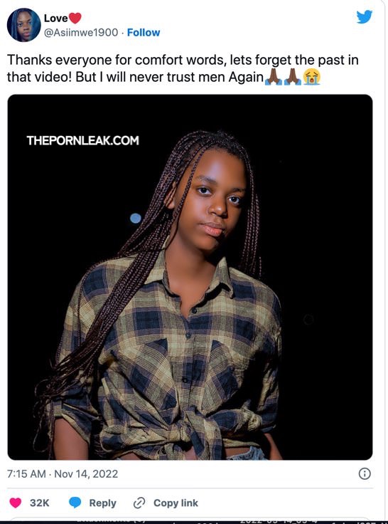 Now, Asiimwe 1900 has come out to reveal how she won’t trust men again and said that she’s disappointed on how her video found its way to the internet.