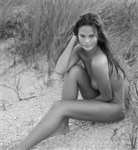 Mushroom faced mudshark model Chrissy Teigen poses completely nude while on the beach in the new photos below.
