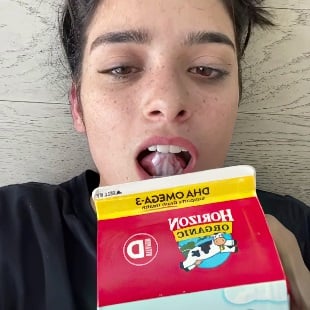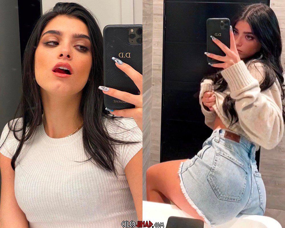 19-year-old social media star Dixie D’Amelio shows her 42 million fans on TikTok what a kinky freak she is by simulating shitting in a sink in the pic above, and swallowing copious amounts of white cream in the video below.