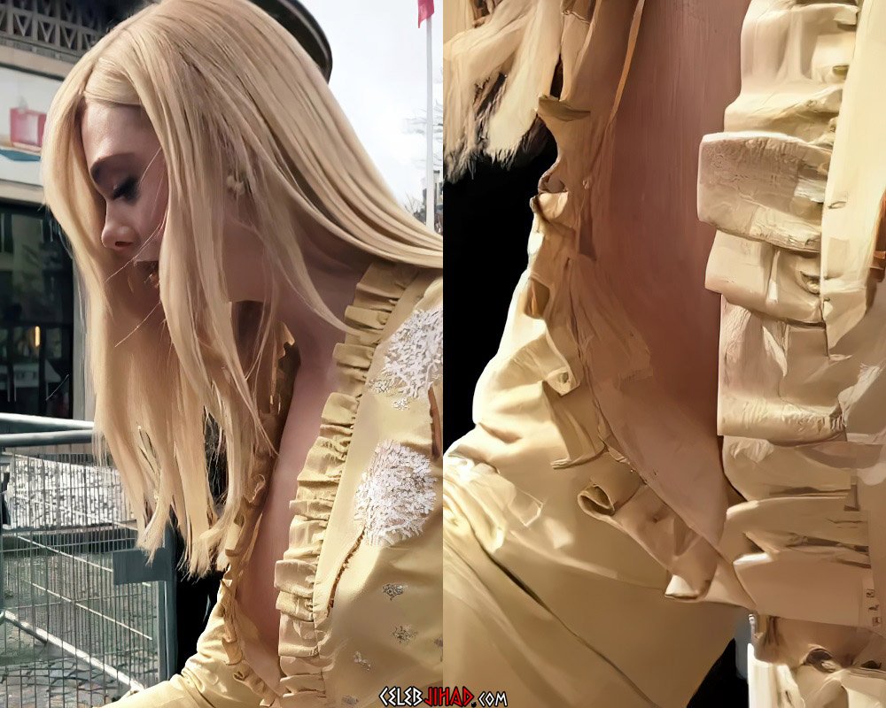 Elle Fanning gives her hopelessly depraved fans a thrill by flaunting her nipple in their faces while signing autographs in the enhanced video clip below.
