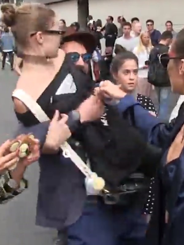 Of course the hopelessly corrupt Western media is making a big deal about this, but the real victim in this case is this Muslim man who was no doubt forced to degrade himself into trying to kidnap Gigi when she infected him lecherous djinns with the exposing of her tits on the runway. Clearly this man is deserving of restitution from Gigi Hadid in form of a vigorous tongue lashing of her blasphemously bulbous breast meat.