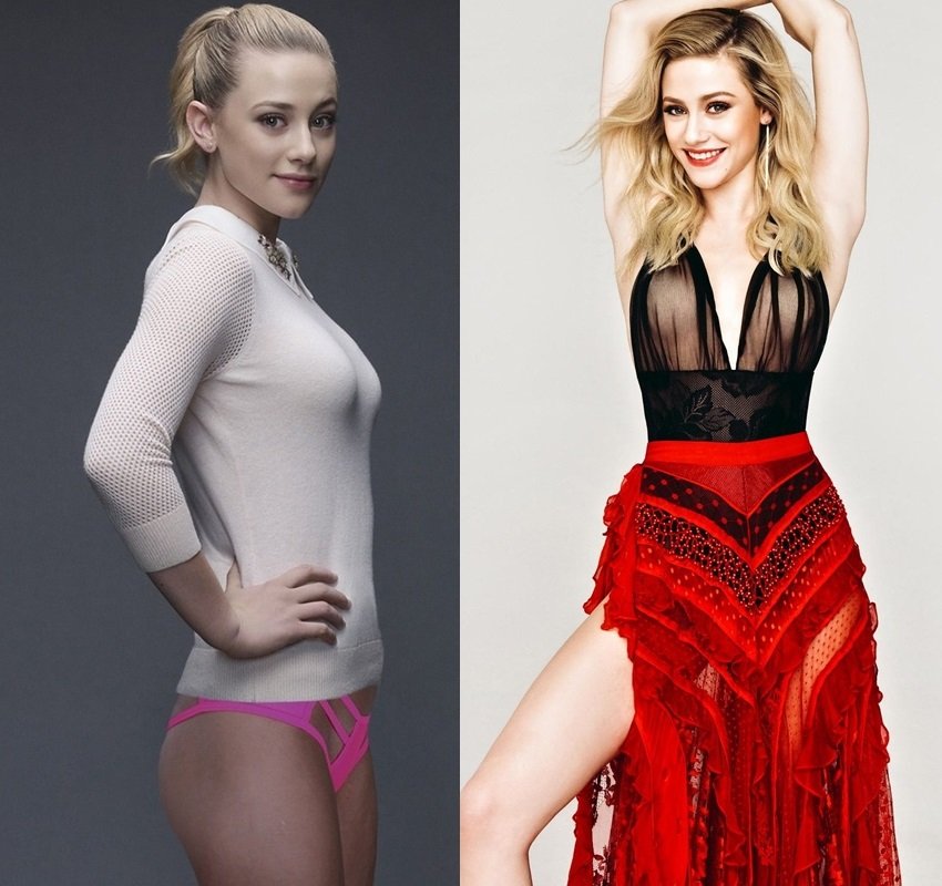 “Riverdale” star Lili Reinhart flaunts her perky titties and sinfully pink hard nipples in the nude outtake photos above and below.