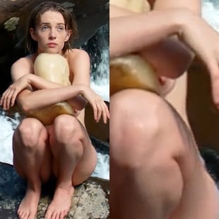 “Stranger Things” star Maya Hawke slips out her nipple while crouching nude in the video clip below from her new music video.