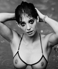 Netflix’s “Stranger Things” star Maya Hawke shows off her nude titties in a completely see through bra in the photos below.