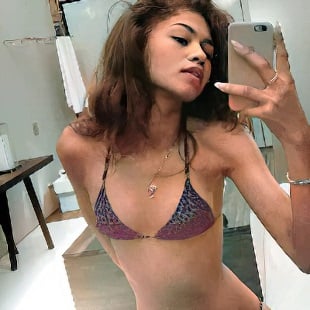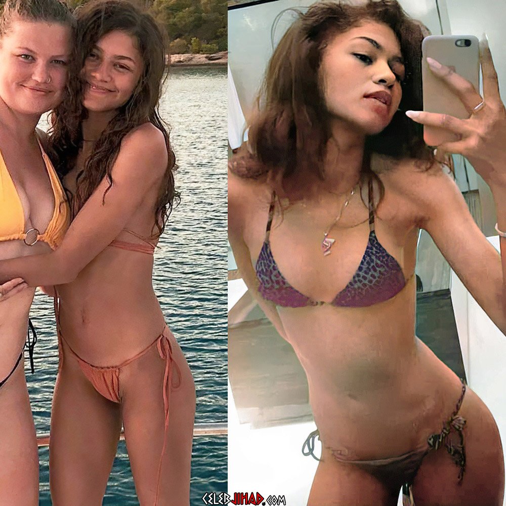 The creature known as Zendaya shows off her pleasingly androgynous body in a skimpy bikini in the recently uncovered surveillance video below.